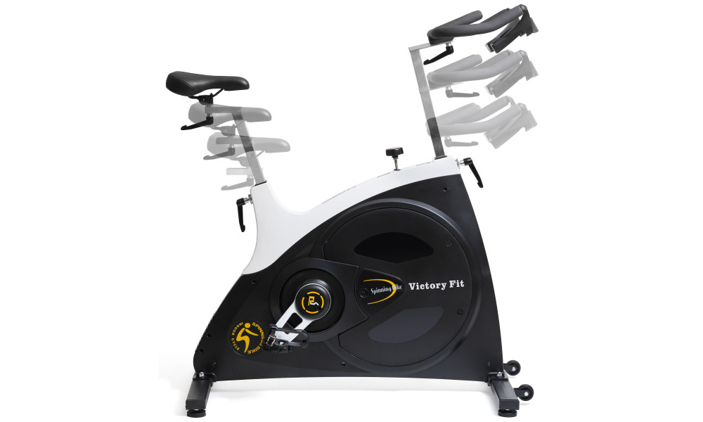 С помощью спинбайка VictoryFit VF-GymRider 230 можно имитировать вело прогулку по пересеченной местности, тренажер является эффективным помощником при борьбе с лишним весом, а также способствующим укреплению кардиосистемы. Инерционная система нагрузки включает в себя маховик весом 23 кг, предусмотрено изменение уровня нагрузки. Наряду с регулировкой рулевого блока, настраивается высота и глубина посадки на седло. В зависимости от выбранной высоты седла, расстояние от седла до педалей составит от 70 до 93 см. Тренажер защищен кожухом, препятствующим попаданию пыли или влаги (пота), что положительно сказывается на сроке службы спинбайка.